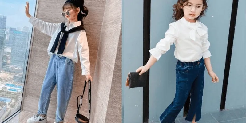 - Phụ huynh có thể lựa chọn váy jeans, kaki, hoặc vải dệt thô, phối cùng sneaker hoặc sandal đế mềm để giữ được sự trẻ trung, khỏe khoắn. Đây là một trong những set đồ linh hoạt, có thể mặc đi học, đi chơi hoặc chụp ảnh.