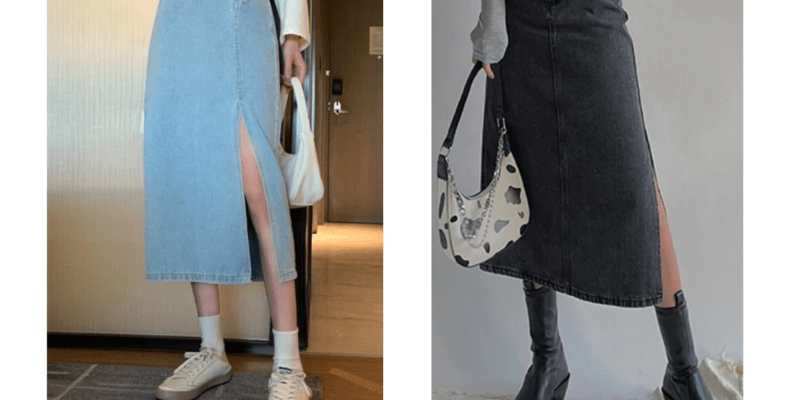 Chân váy jean có đường cắt hoặc xẻ trước