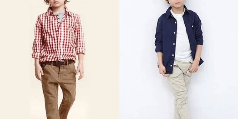 - Áo sơ mi kẻ caro, sơ mi trơn hay sơ mi họa tiết nhỏ mix cùng quần jeans là combo sành điệu dành cho bé trai 5 tuổi. Set đồ này phù hợp khi bé đi dự tiệc sinh nhật, chụp ảnh gia đình hoặc đi chơi cuối tuần.