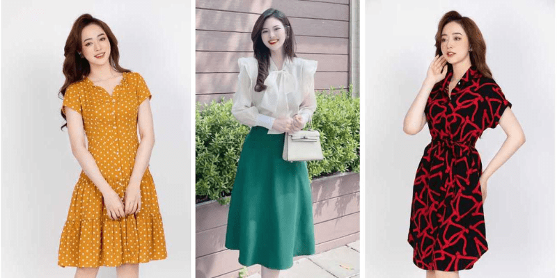 - Váy suông, váy babydoll – che bụng, thon dáng