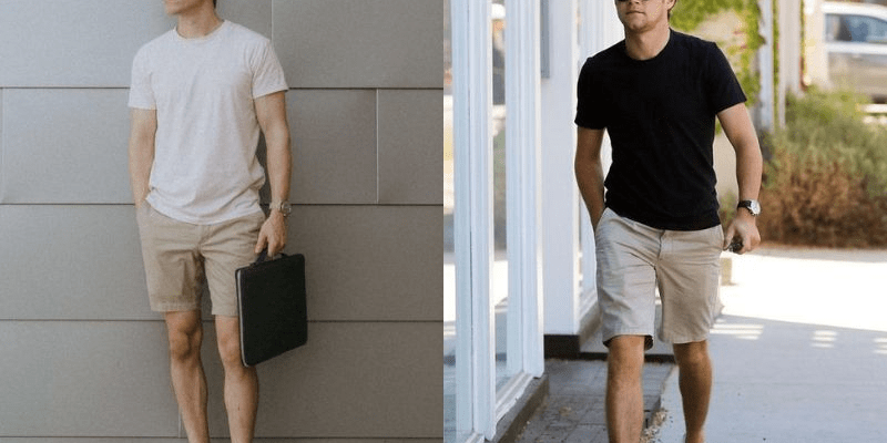 Áo thun slim-fit vừa vặn giúp thân trên gọn gàng, kết hợp quần short cạp cao giúp “ăn gian” chiều dài đôi chân. Chọn sneaker trắng hoặc giày slip-on để tăng cảm giác cao ráo.