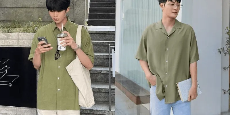 Áo sơ mi cộc tay chất liệu mỏng nhẹ khi phối cùng quần tây và sandal da tạo nên outfit lịch lãm nhưng vẫn thoáng mát, rất hợp để đi ăn tối, hẹn hò hay dự tiệc nhỏ. Hãy ưu tiên màu nhã nhặn như be, trắng, xanh pastel để giữ được sự thanh lịch.