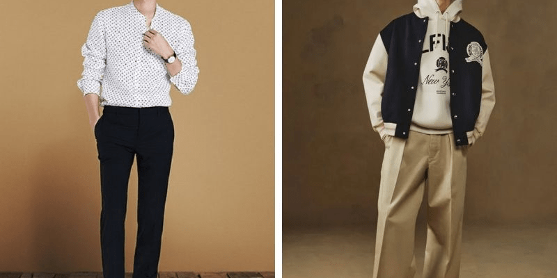 Phong cách năng động, trẻ trung nhưng vẫn phù hợp với người gầy. Áo hoodie tạo cảm giác đầy đặn phần ngực, trong khi áo bomber giữ form phần vai. Quần jogger co giãn vừa vặn, tạo nét thể thao và thoải mái. Nên chọn hoodie có mũ và túi trước để tăng hiệu ứng hình thể. Áo bomber nên có cổ knit để tạo thêm độ dày cho vai.