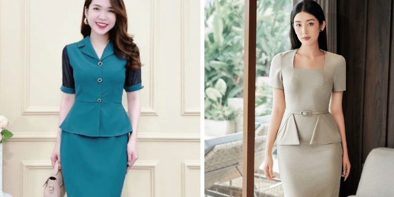- Chọn đồ nhấn eo, thắt đai hoặc chân váy xòe nhẹ để tạo cảm giác thân dưới nở hơn, từ đó cân đối phần trên. Váy hoặc áo peplum là item lý tưởng giúp giả đường cong eo – hông cực hiệu quả. Bạn có thể thử chân váy chữ A, váy xếp ly, hoặc váy midi xòe để mở rộng thị giác phần thân dưới.