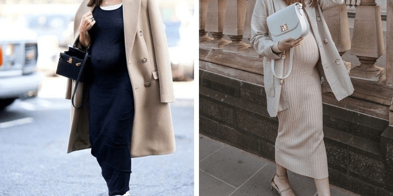 - Dành cho các mẹ bầu yêu thích phong cách thời trang cá tính, quyến rũ. Váy ôm giúp tôn lên đường cong cơ thể nhưng vẫn cần chọn chất liệu co giãn nhẹ để đảm bảo thoải mái. Blazer lửng tạo sự cân bằng và che đi phần bụng một cách tinh tế, đồng thời làm nổi bật phần ngực và vai. Có thể chọn màu trung tính như đen, trắng, hoặc pastel để dễ phối phụ kiện.