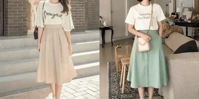 Bạn có thể chọn croptop màu trung tính hoặc pastel, chân váy màu tối để tạo độ tương phản cân đối. Khi đi cùng giày búp bê, sandal quai mảnh hay sneaker, tổng thể outfit sẽ trở nên vô cùng dễ thương và thời thượng.